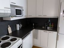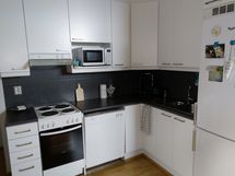 - Keittiön varusteet: Liesi, uuni, liesituuletin, jääkaappipakastin ja astianpesukone. Liesi: Keraaminen liesi. Työtason materiaali: Laminaatti. -Keraaminen liesi, liesituuletin, jääkaappi/pakastinkaappi, astianpesukone