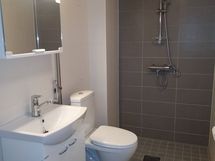 -Seinät ja lattia laatoitettu (lattialämmitys). Erillisen WC:n kuvaus: -Suihku, suihkuseinä, wc, käsienpesuallas, pk-liitäntä