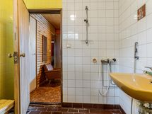 - Sauna, sähkökiuas. Pesuhuone: suihku, pesukoneliitäntä, pesuallas, lattialämmitys, kiinteät valaisimet. Erillinen wc.