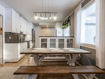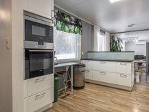 - Keittiön varusteet: Jääkaappipakastin (2013), erillisuuni (2015), astianpesukone (2018), keittiösaareke, liesituuletin (Aktiivihiili 2021) ja liesi (2024). Liesi: Induktioliesi. Työtason materiaali: Laminaatti.