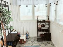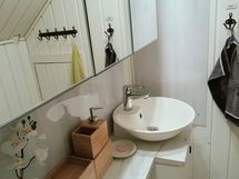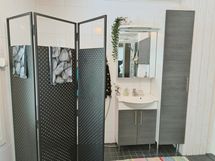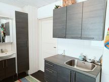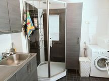 -Seinät ja lattia laatoitettu (lattialämmitys). Erillisten WC:n lukumäärä: 2. Erillisen WC:n varusteet: WC-istuin, suihku, suihkukaappi, pesukoneliitäntä, lattialämmitys ja allaskaappi. Erillisen WC:n kuvaus: -Kodinhoitohuoneessa