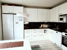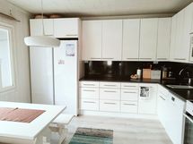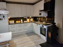 - Keittiön varusteet: Jääkaappi, erillinen pakastin, liesi, liesituuletin, astianpesukone ja uuni. Liesi: Induktioliesi. Työtason materiaali: Laminaatti. -Induktioliesi (kiertoilma ei toimi) liesituuletin, jääkaappi, pakastinkaappi,