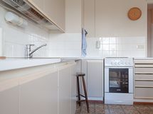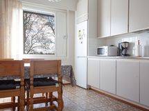 - Tilaa isolle ruokapöydälle, Suuri tiskipöytä, Paljon kaappitilaa, Sähköliesi, Jää-pakastinkaappi, Terästasot, Terästaso+Laminaattitasot