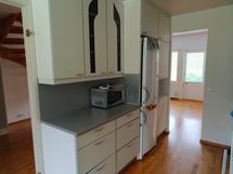 - Keittiön varusteet: Jääkaappipakastin, liesi, uuni, astianpesukone ja liesituuletin. Liesi: Keraaminen liesi. Työtason materiaali: Laminaatti. -Keraaminen liesi, liesituuletin, astianpesukone, jääkaappi/pakastinkaappi