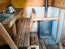 - Kiuas: Puukiuas. -Puilla lämmitettävä kiuas