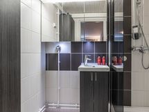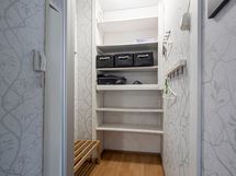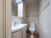 - Pesutilojen varusteet: Suihku, suihkuseinä, pesukoneliitäntä, allaskaappi, pesuallas, peilikaappi ja korkea tarvikekaappi. Pesutilojen kuvaus: Pesutila kaakeloitu ja vesieristeet 2013 ja kylpyhuoneen kalusteet on uusittu 2015. Erillisten WC:n lukumäärä: 1. Erillisen WC:n varusteet: WC-istuin, pesuallas, allaskaappi ja peilikaappi. Erillisen WC:n kuvaus: WC:n vesikalusteet on uusittu 2015.