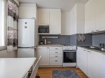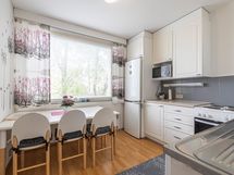 - Keittiön varusteet: Jääkaappipakastin (2015), liesi (2015), uuni (2015) ja astianpesukone (2018). Liesi: Valurautaliesi ja sähköhella. Työtason materiaali: Laminaatti.