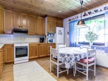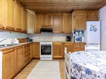 - Jääkaappipakastin 2016, keraaminen liesi 2008, liesituuletin, astianpesukone 2015, kaapistot, kiinteät valaisimet, pöytätasojen materiaali umpipuu, laminaatti.
