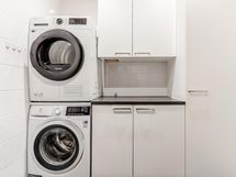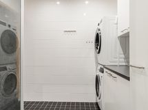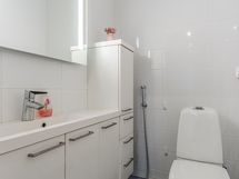 - Sauna: ikkunallinen, sähkökiuas. Pesuhuone: suihku, suihkuseinä, liitännät pesutornille, kiintokalustus, lattialämmitys, kiinteät valaisimet. Erillinen wc: peilikaappi, allaskaappi.