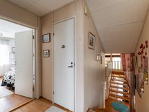Lattia: Keittiössä: muovi. Pesutiloissa: laatta. Erillisessä WC:ssä: muovi. Olohuoneessa: lauta. Makuuhuoneessa: muovi. Saunassa: laatta. Seinät: Keittiössä: maalattu. Pesutiloissa: kaakeli. Erillisessä WC:ssä: muovi. Olohuoneessa: maalattu. Makuuhuoneessa: maalattu, tapetti. Saunassa: puu.