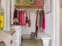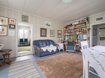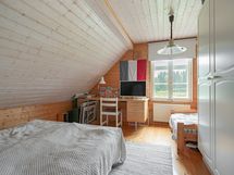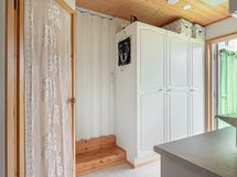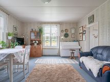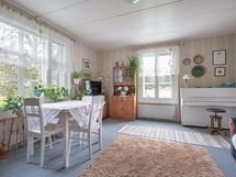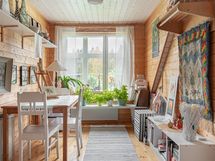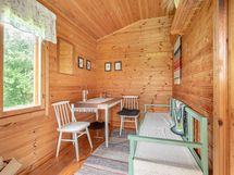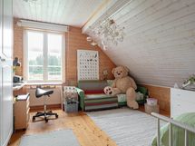Seinäpinnat ovat maalattu ja osittain hirsiseinää on otettu kauniisti esille.