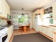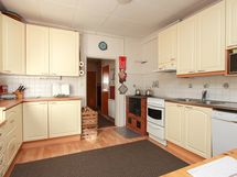 - Kaapistot, tasotilaa, induktioliesi/sähköuuni, puuhella, jääkaappi, astianpesukone, liesituuletin.