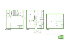 - Huoneistoala perustuu 1970-luvun laajennuspiirustukseen (laajennusta ei ole tehty) ja kokonaispinta-ala DVV:n rakennustietoihin.
