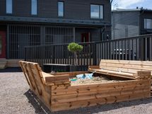 Yhteisomistuksessa olevalla piha-alueella on leikkialue. Asuntojen edessä oleva piha-alue on nurmikkoa ja rajoittuu pensasaitaan.
