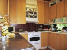 Liesi: sähköliesi. Työtasot: laminaatti. Kylmäsäilytys: jääkaappi/pakastin, jää/viileäkaappi. Varustus: liesituuletin / hormi.
