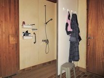 Varustus: suihkuseinä, pesukoneliitäntä, wc-istuin, suihku, peili.