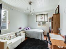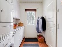 Makuuhuoneet ovat tilavia, kodinhoitohuoneesta ja saunasta kulku suoraan takapihalle.