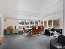 Lisäksi erillinen talousrakennus jossa, kesäasunto noin 35 m² tupakeittiö, makuuhuone ja wc joka lämpiää ilmalämpöpumpulla sekä liiterirakennus.