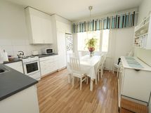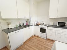 Varusteet: Jääkaappipakastin, Astianpesukone. Työtaso: Laminaattitaso. Liesi: Sähköliesi