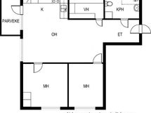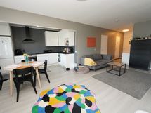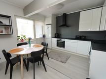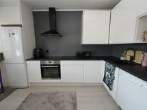 Varusteet: jääkaappipakastin, astianpesukone. Työtaso: laminaattitaso. Liesi: induktioliesi, erillisuuni, liesituuletin