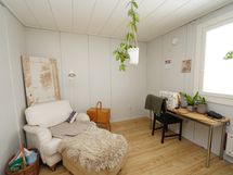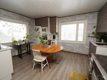Seinämateriaali: puuseinä. Lattiamateriaali: laattalattia