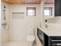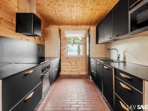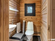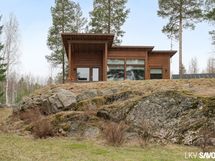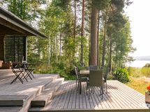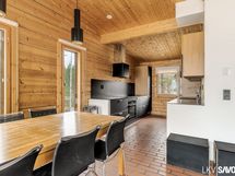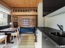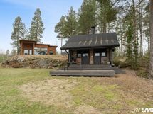 Vuonna 2014 valmistunut viehättävä hirsitalo pitää sisällään erillisen makuuhuoneen, kylpyhuoneen ja kivan väljän keittiö-olohuonetilan, josta on kulku terassille. Talosta löytyy nykyaikaiset mukavuudet, kuten astianpesukone, lattialämmitys sekä kylpyhuoneessa on oma paikkansa pyykkihuollolle. Tontilta löytyy myös lämmin varastorakennus autokatoksella ja perinteinen rantasauna, jossa on keittiö, erillinen wc ja parvi.