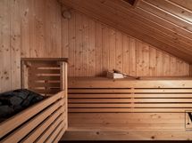 - Kiuas: Puukiuas ja sähkökiuas. Ulkosaunassa on puukiuas ja sisäsaunassa sähkökiuas.