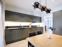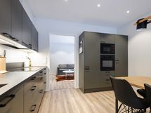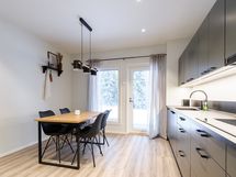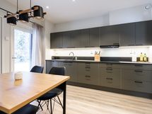 Huoneiston helmi on keittiö, joka on varsin miellyttävästi sisustettu ja moderneilla kodinkoneilla varusteltu.