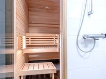- Pesutilojen varusteet: Suihku, pesukoneliitäntä, lattialämmitys, peili ja pesuallas. Erillisten WC:n lukumäärä: 1. Erillisen WC:n varusteet: WC-istuin, peilikaappi, pesuallas, bidee-suihku, lattiakaivo ja lattialämmitys.