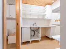 Pesutilojen varusteet: Pesuallas ja wc-istuin. Pesutilojen kuvaus: Tällä hetkellä ei ole kylpyhuonetta - tila sille toki on (voi rakentaa). Erillisten WC:n lukumäärä: 1. Erillisen WC:n kuvaus: Wc-istuimet nyt kylpyhuoneen paikalla, tilasta erotettavissa erilliset wc ja kylphuone.