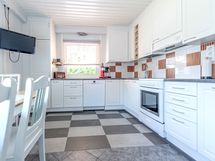- Keittiön varusteet: Erillinen pakastin, jääkaappi, liesi, mikroaaltouuni, liesituuletin ja kiinteät valaisimet. Liesi: Keraaminen liesi. Työtason materiaali: Laminaatti.