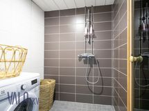 - Varustus: pesukoneliitäntä, lattialämmitys, suihku, kiinteät valaisimet. Erillisen WC:n kuvaus: allaskaappi, korkea kaappi. Varustus: lattialämmitys, peilikaappi, bidee-suihku.