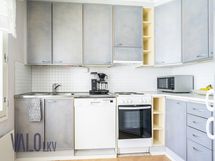- Liesi: sähköliesi. Työtasot: laminaatti. Kylmäsäilytys: jääkaappi/pakastin. Varustus: liesituuletin, astianpesukone, kiinteät valaisimet.