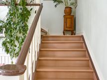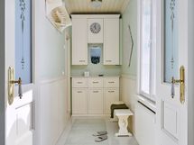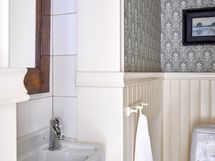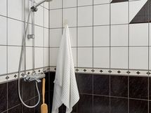 - Pesutilojen kuvaus: Pesuhuone on remontoitu arviolta 80-luvulla. Varustus: suihku, pesukoneliitäntä, lattia laatoitettu ja seinät kaakelia. Sähköinen lattialämmitys. Pukuhuoneesta kulku pesuhuoneeseen. Erillisen WC:n kuvaus: Alakerraan WC varustus: lavuaari, peili, wc-istuin, pienet seinähyllyt, naulakko. Lattia laatoitettu ja seinät paneeli/tapetti. Yläkerran WC varustus: pöytätaso, käsienpesuallas, peili, pyyhenaulakko, wc-istuin. Lattia laatoitettu ja seinät paneeli/tapetti.