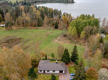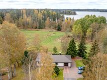 Talon yhteydessä on autotalli ja talon takana on tilava terassi järvinäköalalla.