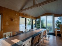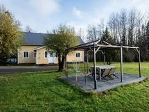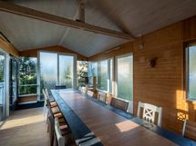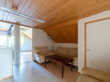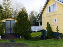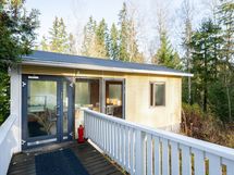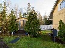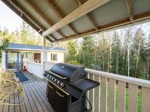 - Takapihan puolella lännen suuntaan katettu terassiparveke, josta johtaa kulkusilta kesäkeittiöön.