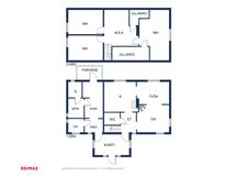 - Pinta-alan peruste: Ei tarkistusmitattu. Pinta-ala voi siis olla edellä mainittua pienempi tai suurempi. Muut tilat käsittävät kellarin noin 35 m2 sekä muita rakennuksen kerrosalaan laskettavia tiloja ja rakennusosia.