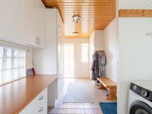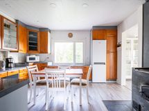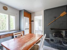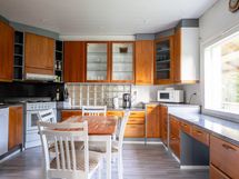 - Keittiön varusteet: Jääkaappipakastin, uuni, liesi, liesituuletin, astianpesukone ja leivinuuni. Liesi: Sähköhella ja puuhella. Työtason materiaali: Laminaatti. Tilavassa keittiössä on runsaasti kaappi- ja laskutilaa. Lämpöä ja tunnelmaa keittiöön luo vuolukivinen puuliesi/leivinuuni.