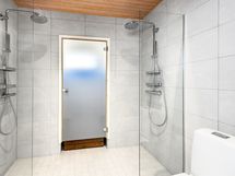 - Pesutilojen kuvaus: Pesuhuoneessa on 2 sadesuihkua ja suihkuseinä, sekä wc-istuin. Erillisen WC:n kuvaus: Varustus: wc-istuin, käsisuihku, valopeili, pesuallas, kaapistot.