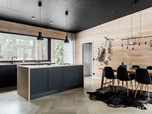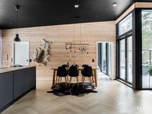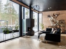 Olohuoneen näyttävä takka, lämmin hirsipinta ja metsämaisema luovat kokonaisuuden, jossa rauha on käsin kosketeltavaa. Keittiö on vaikuttava ja toimiva – iso maisemaikkuna tekee arjen hetkistäkin elämyksen. Neljä makuuhuonetta ja kaksi erillistä wc:tä takaavat sujuvan arjen myös isommalle perheelle.