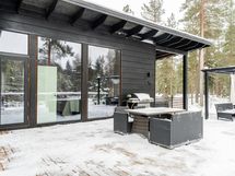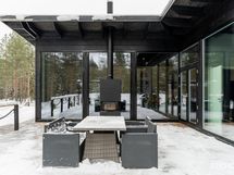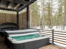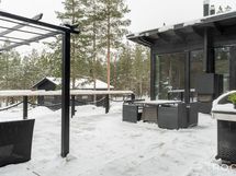 Terassia on noin 120 m² – ja se tarjoaa loistavat puitteet vapaa-ajan viettoon ja rentoutumiseen. Upotettu poreamme ja ulkotakka tekevät tästä kodista paikan, jossa viihdytään ympäri vuoden.