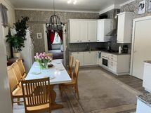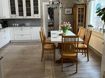 - Tähän on listattu päätalon tiedot: Tilaa isolle ruokapöydälle, Paljon kaappitilaa, Paljon työskentelytilaa, Halogeenivalot, Lasikaapit, Suuri tiskipöytä, Kivitasot, Teräskalusteet, Astianpesukone, Kaasuliesi, Liesituuletin, Jääkaappi, Pakastin