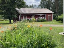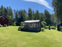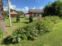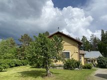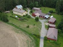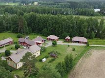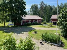 - Päätalo 4h + khh + kph + s + wc ja Vierastalo 3h + k + kph + wc + useita ulkorakennuksia
