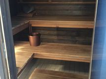 - Sähkökäyttöinen kiuas, Leveät lauteet. paneeliseinät, lauteet tehty lämpökäsitellystä puusta, L -muotoinen istuin