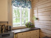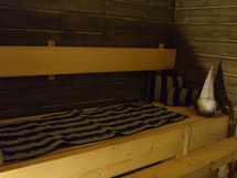 - Misa puukiuas, seinät ja katto kuusipaneelia ja jykevät kuusilauteet. Laattalattia vesikiertoisella lattialämmityksellä.