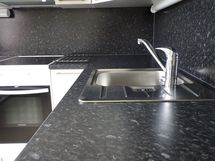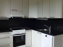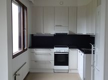 - Paljon kaappitilaa, Suuri tiskipöytä, Paljon työskentelytilaa, Laminaattitasot, Astianpesukone, Keraaminen liesi, Liesituuletin, Jää-pakastinkaappi