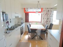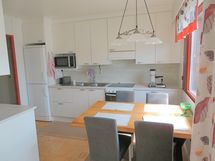 - Tilaa isolle ruokapöydälle, Paljon kaappitilaa, Paljon työskentelytilaa, Liesituuletin, Keraaminen liesi, Laminaattitasot, Jää-pakastinkaappi