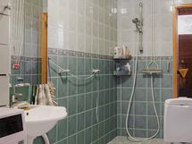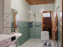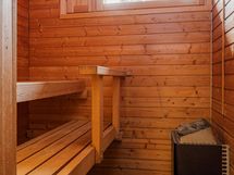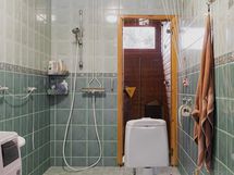 - Sauna lasiovi, lauteet, ikkuna, sähkökiuas, kylpyhuone suihku, pesukoneliitäntä, lavuaari, wc-istuin, erillinen wc peilivalaisin, lavuaari.