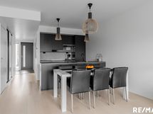 - Integroidut jääkaappipakastin, erillisuuni, induktioliesi, liesituuletin, mikroaaltouuni ja astianpesukone. Kovapuulattia, seinät maalattu ja työtasot laminaattia.