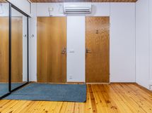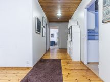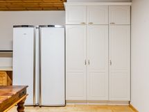 Tuulikaappi, eteinen, vaatehuone ja autotalli. Lisäksi on kaksi varastoa.